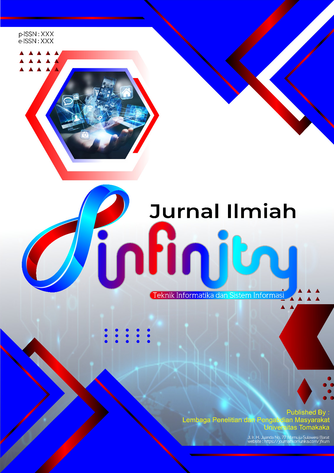 Journal Infinity adalah jurnal ilmiah yang diterbitkan oleh LPPM Universitas Tomakaka Mamuju, yang bertujuan untuk memfasilitasi publikasi hasil penelitian dan kajian ilmiah dalam bidang ilmu komputer dan teknologi informasi. Dengan fokus dan ruang lingkup yang mencakup Sistem Informasi dan Teknik Informatika, jurnal ini menerima artikel yang membahas berbagai topik seperti pengembangan aplikasi, manajemen data, analisis sistem, keamanan siber, kecerdasan buatan, dan teknologi terbaru lainnya yang mendukung kemajuan di bidang teknologi informasi.